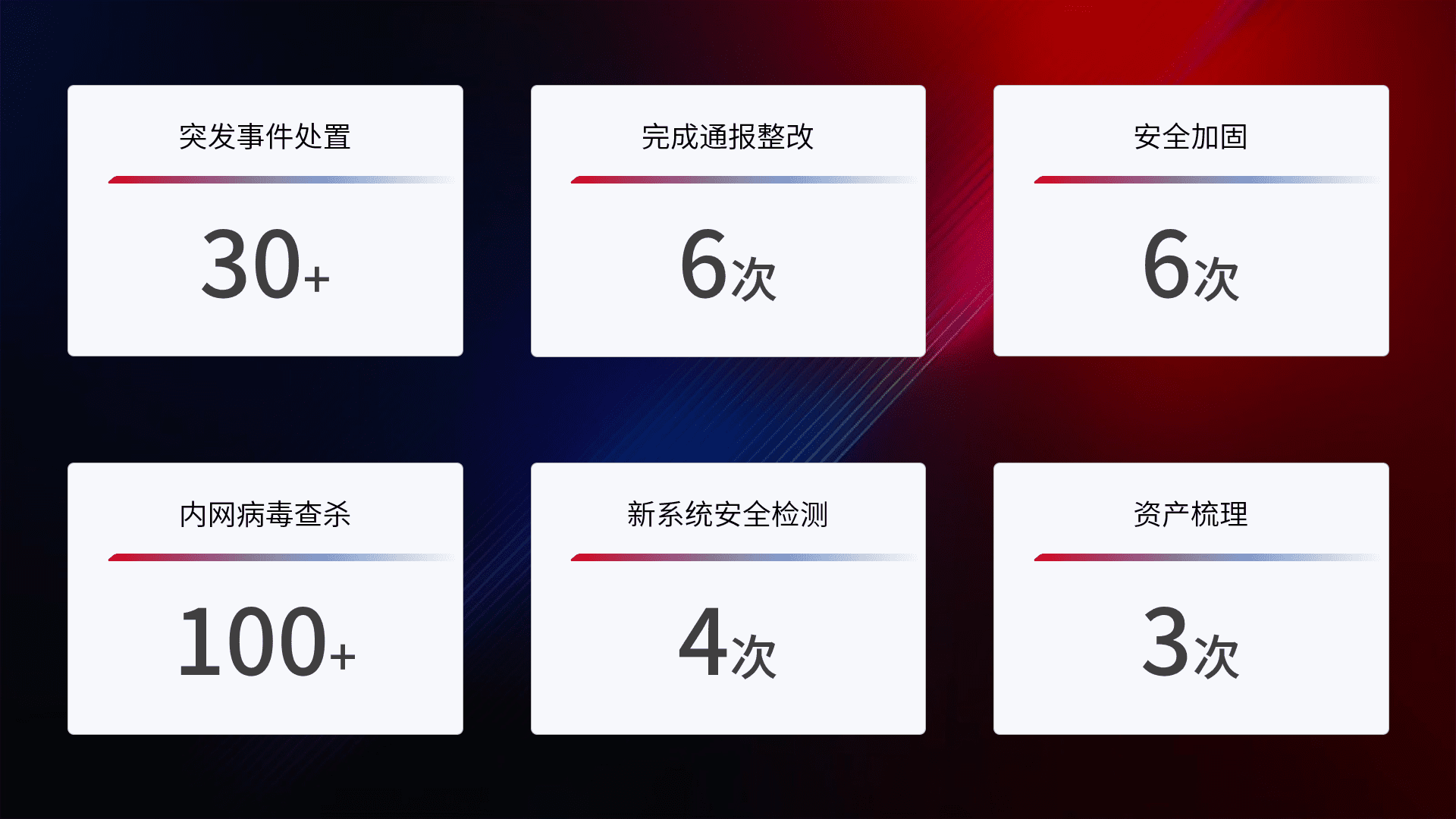 网络安全加固与风险管理:通过技术加固手段,,,,如加强区域隔离,,缩减攻击内网横向移动的范围;优化现有网络安全管理制度,,,,降低网络威胁暴露面,,,减少被黑客攻击的可能性。。。